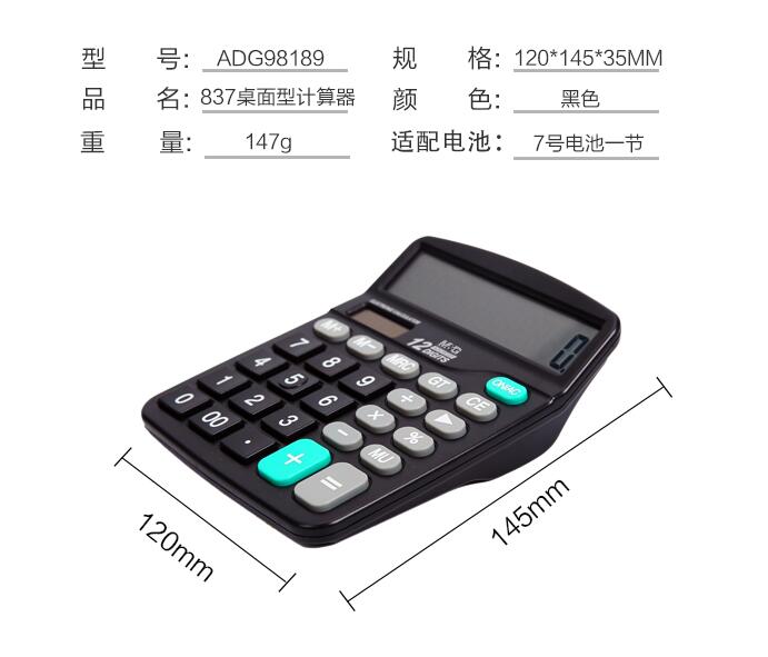晨光文具837太陽能計(jì)算器商務(wù)型辦公用會(huì)計(jì)專用科學(xué)商用學(xué)生考試大屏大按鍵計(jì)算機(jī)大號(hào)小號(hào)便攜雙電源